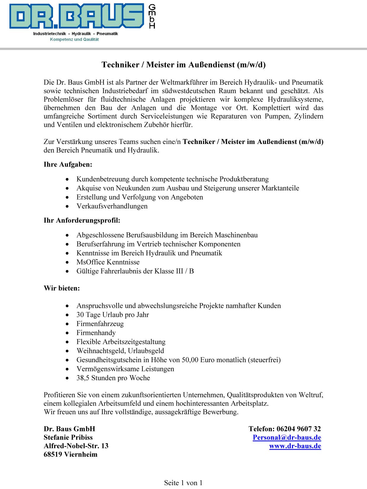 Mitarbeiter Technicher Aussendienst / Vertrieb