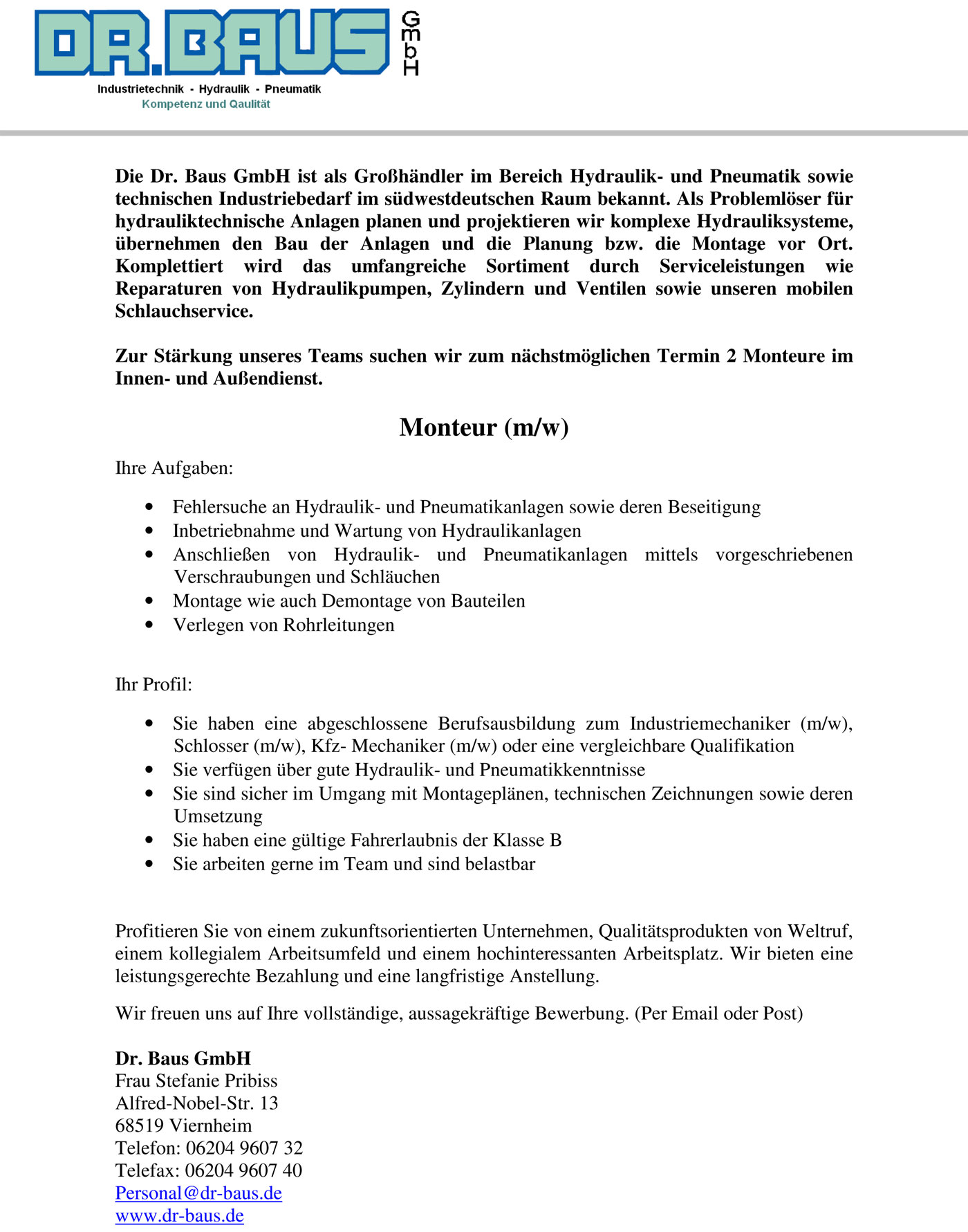 Aktuelle Stellenausschreibung